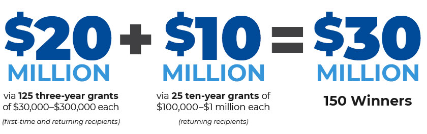 Of the 150 grants, 125 will be disbursed over three years, and 25 will be disbursed over 10 years. To be considered for a 10-year grant, an applicant must meet all the criteria below.