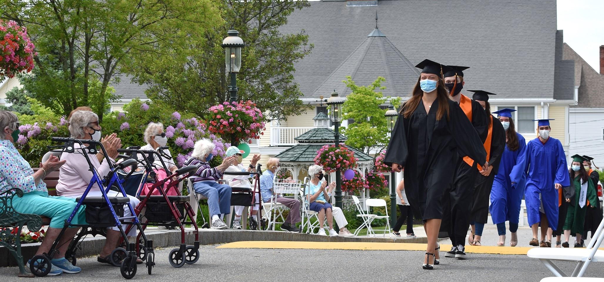 Knowing that most graduation ceremonies had been canceled this year, the management team at Woburn's New Horizons at Choate retirement community staged its first ever ceremony, featuring the 11 graduating seniors who work in its dining room. MORE